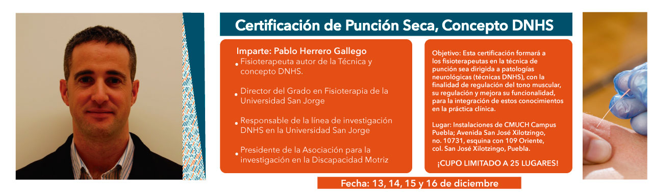 Taller 6ta Certificación Internacional Punción seca en el manejo de la espasticidad técnica DNHS. Imparte: Dr. Pablo Herrero Gallego mas información en vinculacion@cmuch.edu.mx