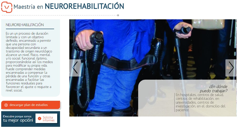 La Maestría tiene como proposito general formar Maestros en Neurorehabilitación capaces de proporcionar atención con el más alto nivel de calidad profesional y calidez humana en el proceso de intervención o tratamiento de las personas con algún tipo de discapacidad de origen neurológico o bien en riesgo de padecerla, al tiempo de desarrollar líneas de investigación en el contexto de las neurociencias, más información aquí