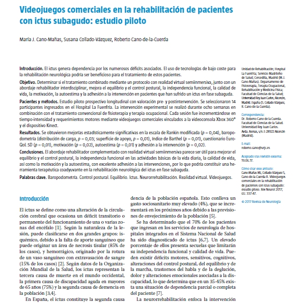 El ictus genera dependencia por los numerosos déficits asociados. El uso de tecnologías de bajo coste para la rehabilitación neurológica podría ser beneficioso para el tratamiento de estos pacientes.